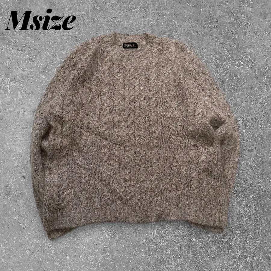 케이블 짜임 니트 스웨터 울 x 모헤어 혼방 브라운 구제 의류