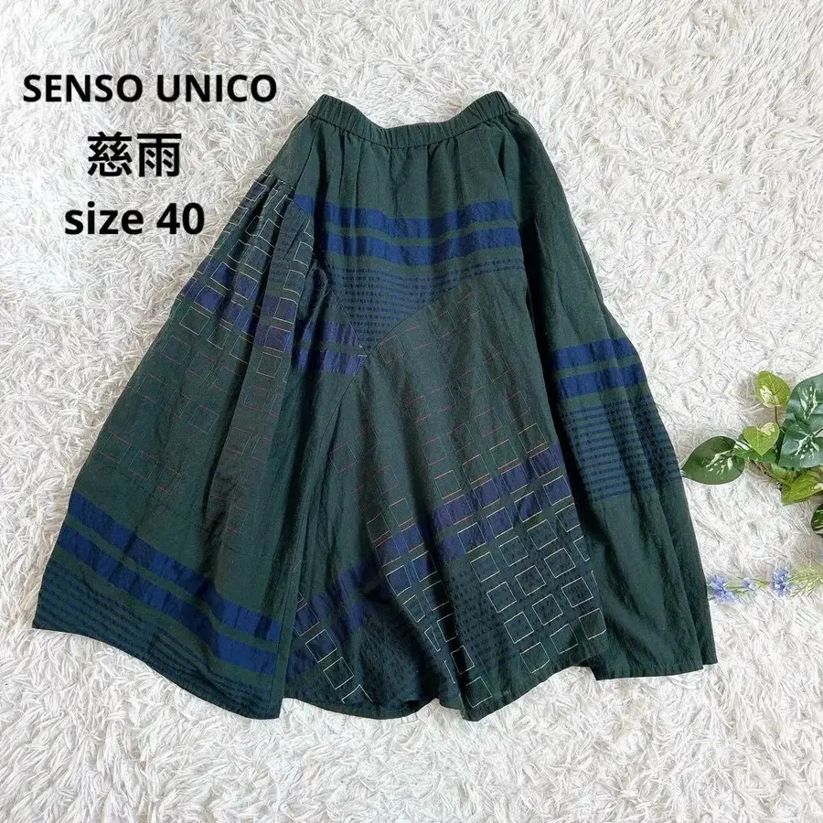 새상품급 센소유니코 지우 롱 스커트 스퀘어 자카드 보더 변형 L