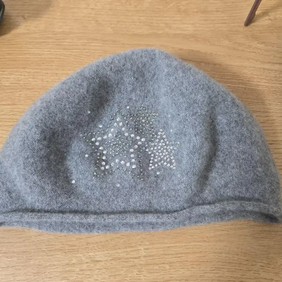즈킨 Zukin 그레이 니트 모자 별 울 100% 스팽글