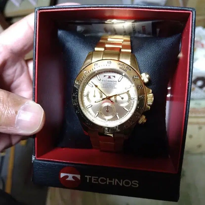 TECHNOS 골드 크로노그래프 시계