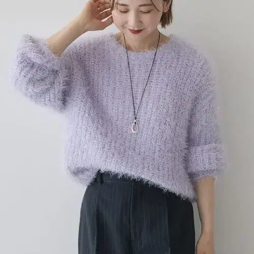 새상품! 아메리칸 홀릭 니트 스웨터 샤기 니트 라일락 M