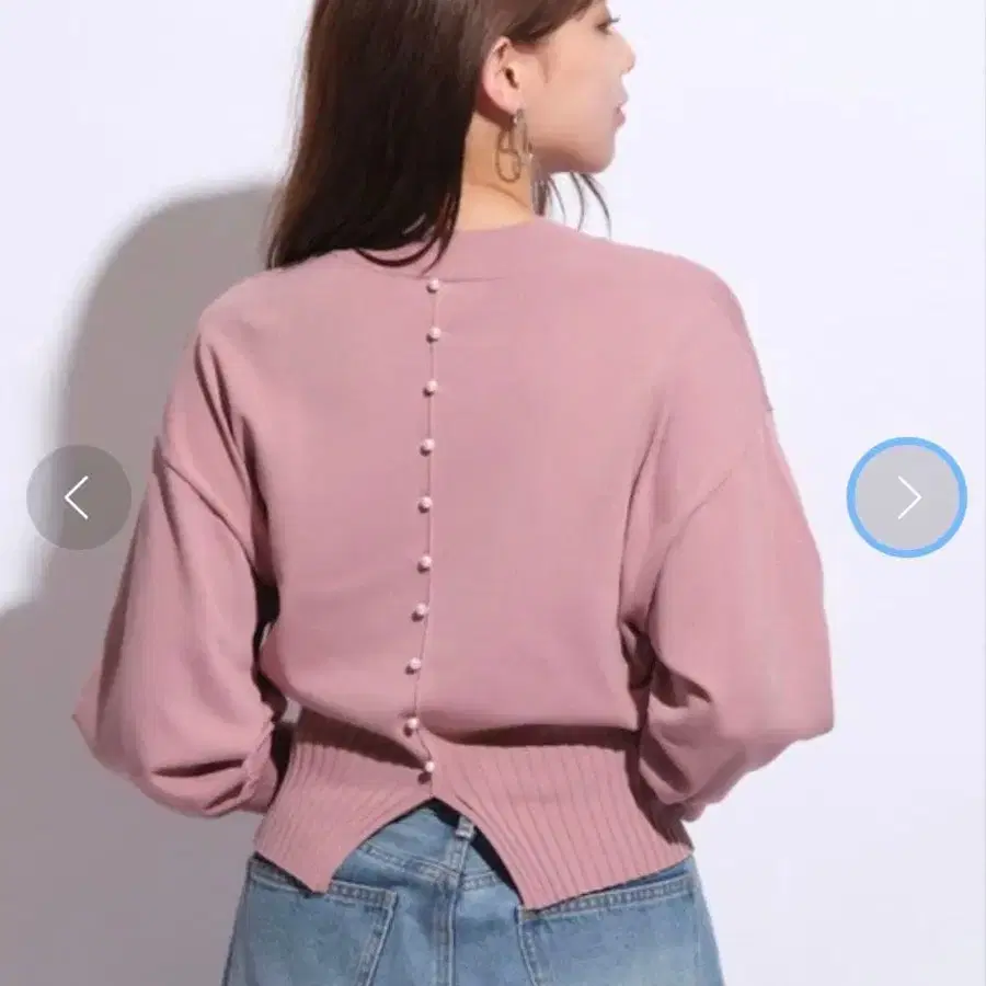 Mystrada 마이 스트라다 7부 소매 백 펄 니트 핑크