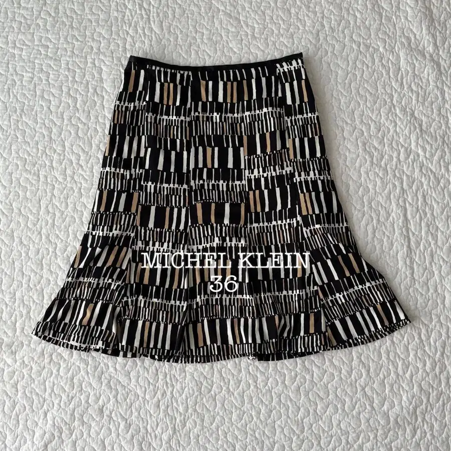 미쉘클랑 프린트 스커트 플레어 무릎 기장 블랙 화이트 36 고급