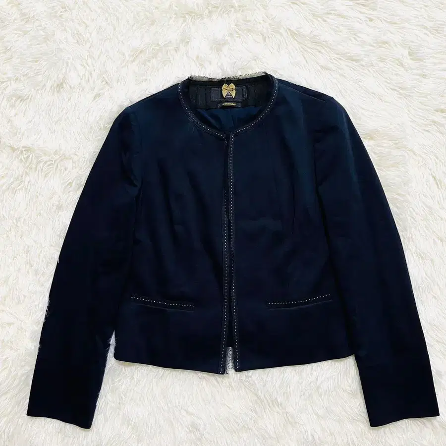 새상품급 INED 이네드 노카라 자켓 네이비 일본제 코튼 혼방 7호