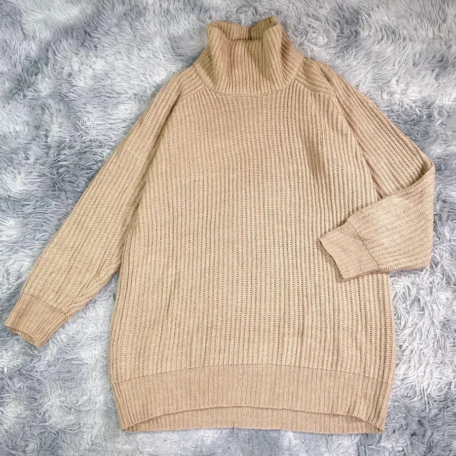 ZARAKNIT [ M ] 하이넥 스웨터 베이지 두꺼운 원단 여성용