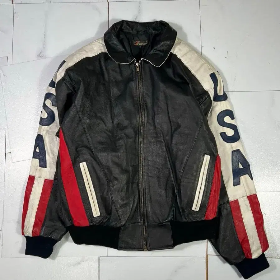 MONTANA 몽타나 미국 국기 디자인 가죽 자켓