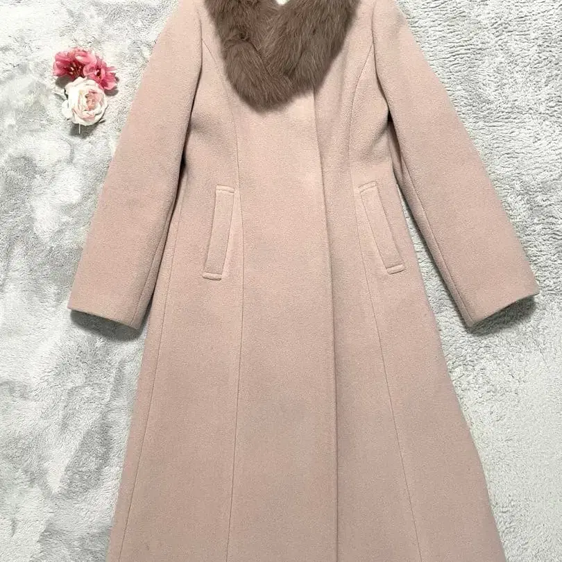 [ 새상품급 ] 프로포션 롱 코트 핑크 베이지 퍼 포함