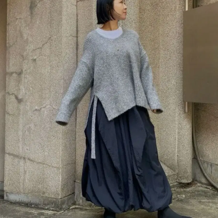 emmi atelier 에미 V넥 알파카 혼방 샤기 니트