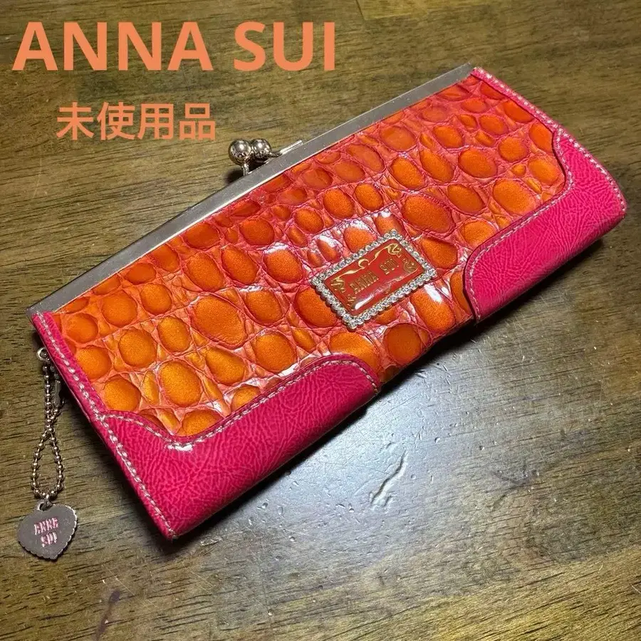 [ 미사용 새상품 ] ANNA SUI 가마구치 장지갑 악어 엠보싱 오렌지