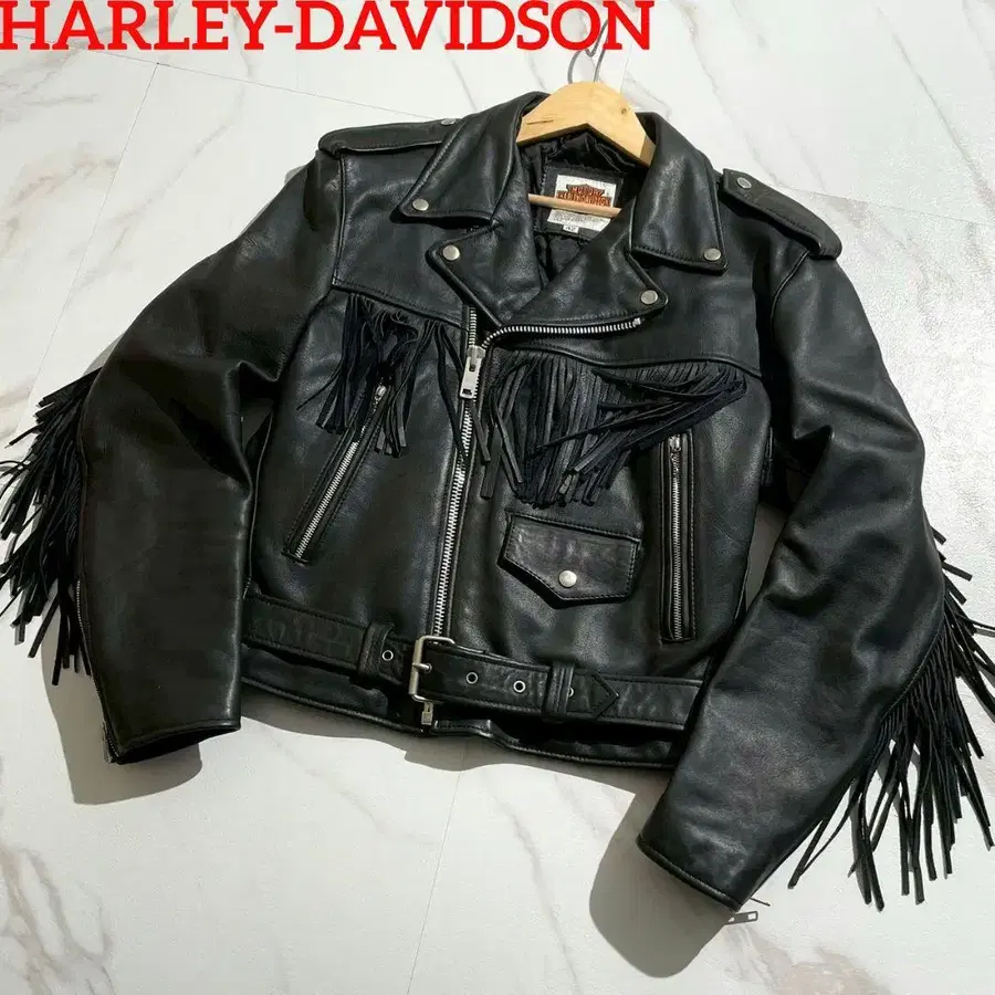 새상품급 레어 디자인 할리데이비슨 더블 라이더스 프린지 소가죽 XL