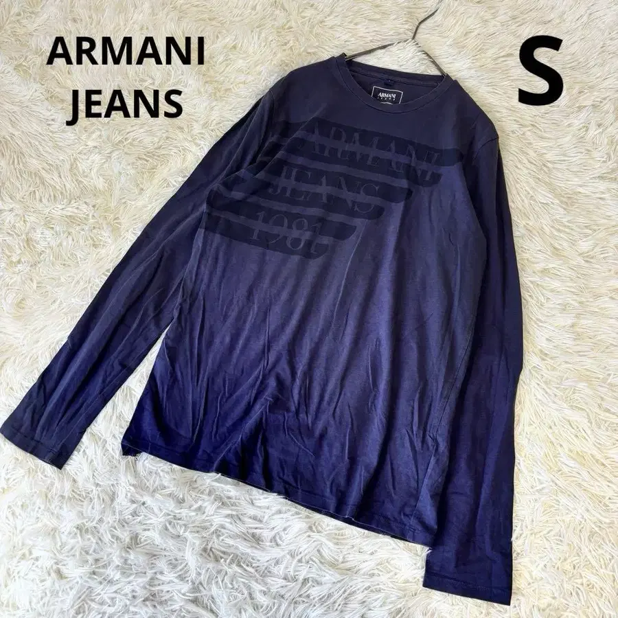 아르마니진스 로고 프린트 긴팔 T셔츠 S 네이비