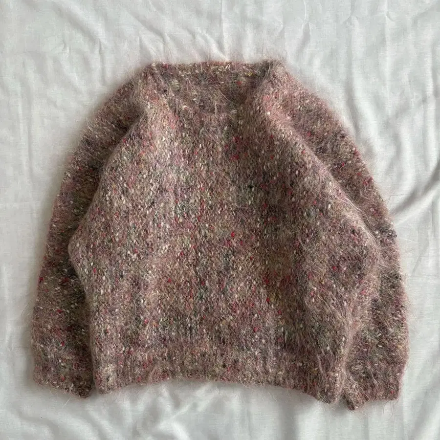 샤기 믹스 니트 소프트 핑크 짧은 기장 M 돌먼 슬리브 복슬복슬