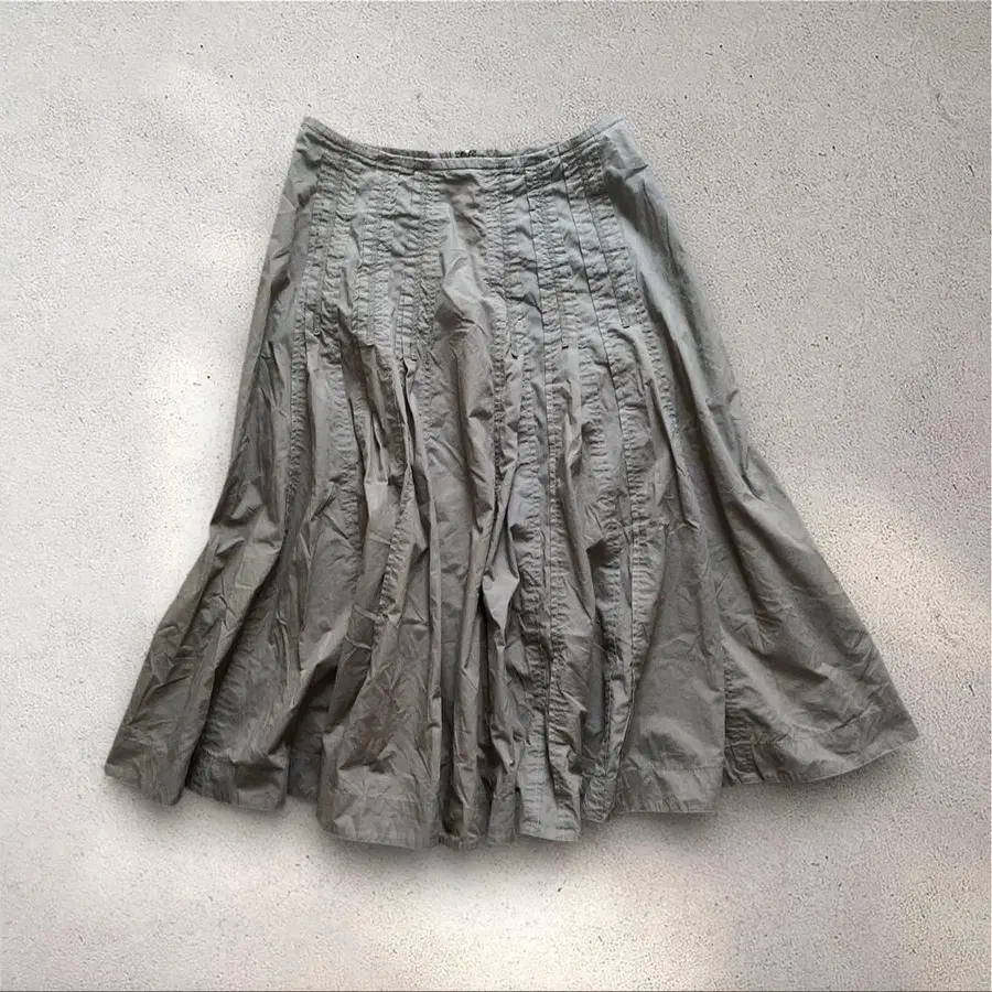 르쉘 플레어 스커트 카키 무릎 기장 플리츠 미디 기장 개더 스커트