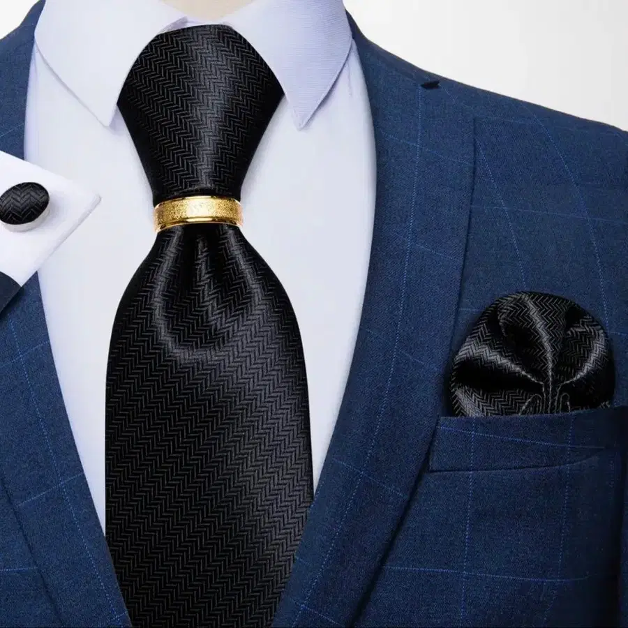 [ 4종 세트 ] 넥타이 결혼식 반지 2차 모임 성인식 블랙 골드