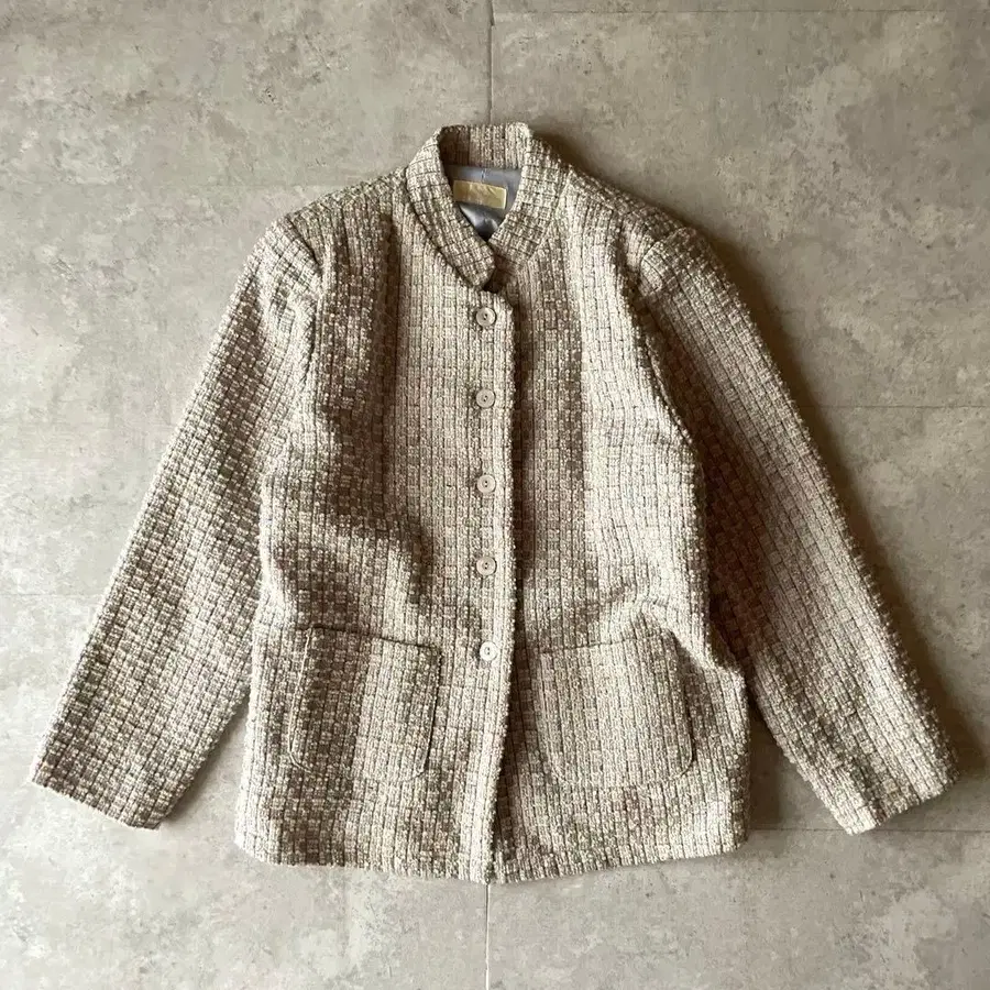트위드 자켓 노카라 자켓 믹스 트위드 아이보리 구제 의류