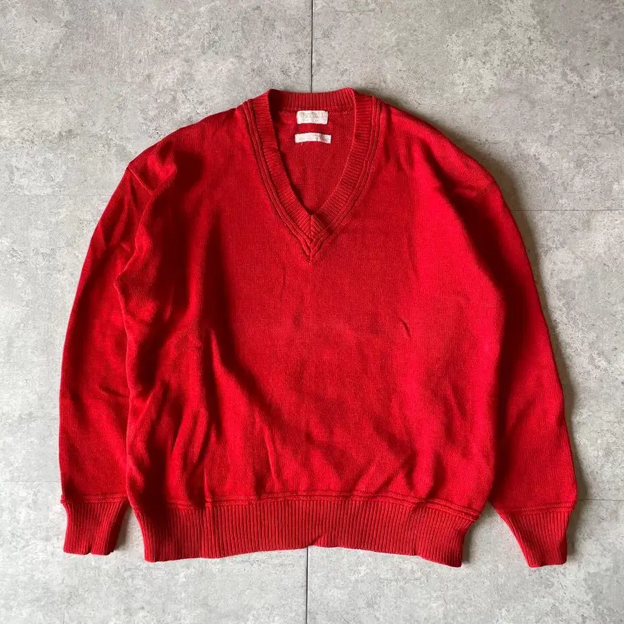 빈티지 빨간색 V넥 니트 코튼 아카이브 구제 의류 상의