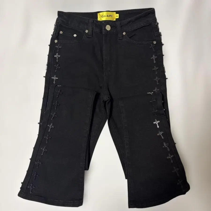 GUAPI 크로스 장식 블랙 플레어 팬츠