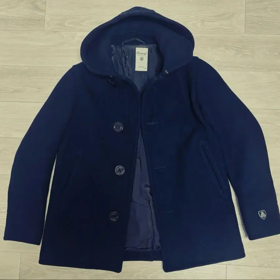 오시발 네이비 후드 부착 울 코트 여성용