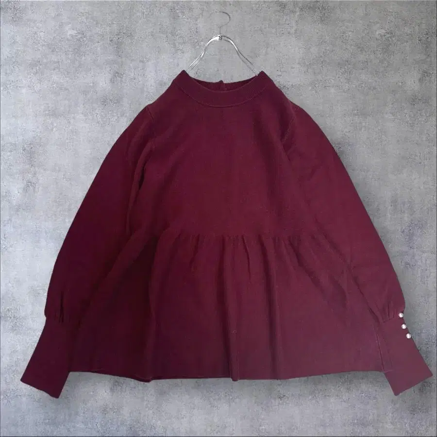 밑단의 페플럼과 넥의 펄 모티브 버튼이 포인트인 니트.