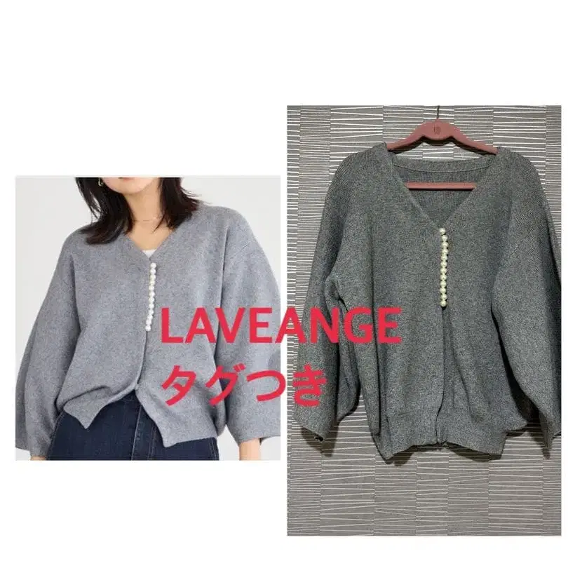[ 미사용 ] 택 포함 라비앙제 벌룬 슬리브 펄 가디건 그레이