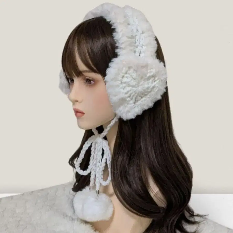 핸드메이드 이어머프 귀도리 화이트 귀마개 니트 y2k 폼폼 부착