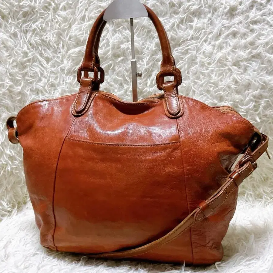 genten 2way 토트백 숄더백 가죽 A4 브라운