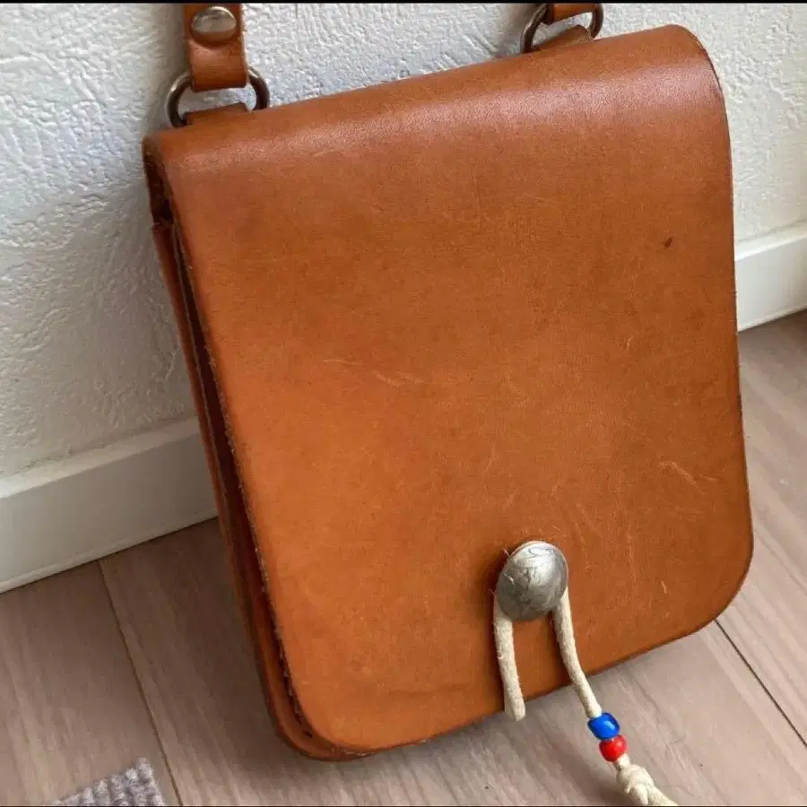 가죽 숄더백 네이티브 콘초 카멜 브라운 천연 가죽 비즈