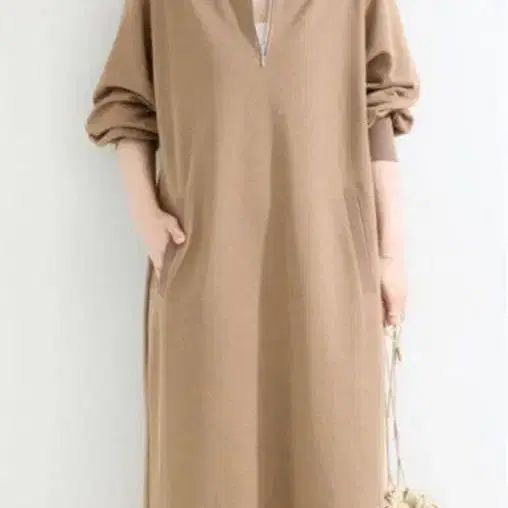 B.C STOCK 워셔블/테리모 하프 지퍼 롱 원피스 브라운