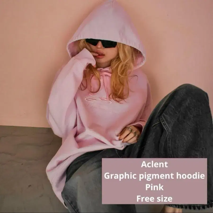 Aclent Graphic pigment hoodie 핑크 프리 사이즈