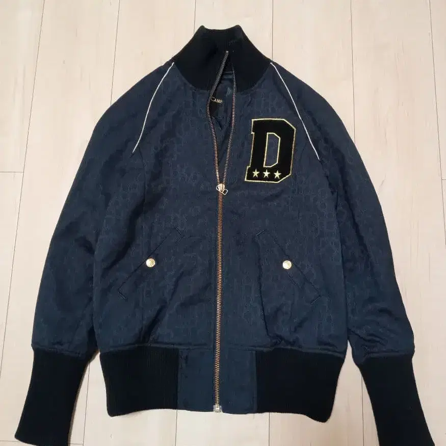 드레스캠프 스타디움 자켓 블루종 로고 와펜 골드 버튼 블랙