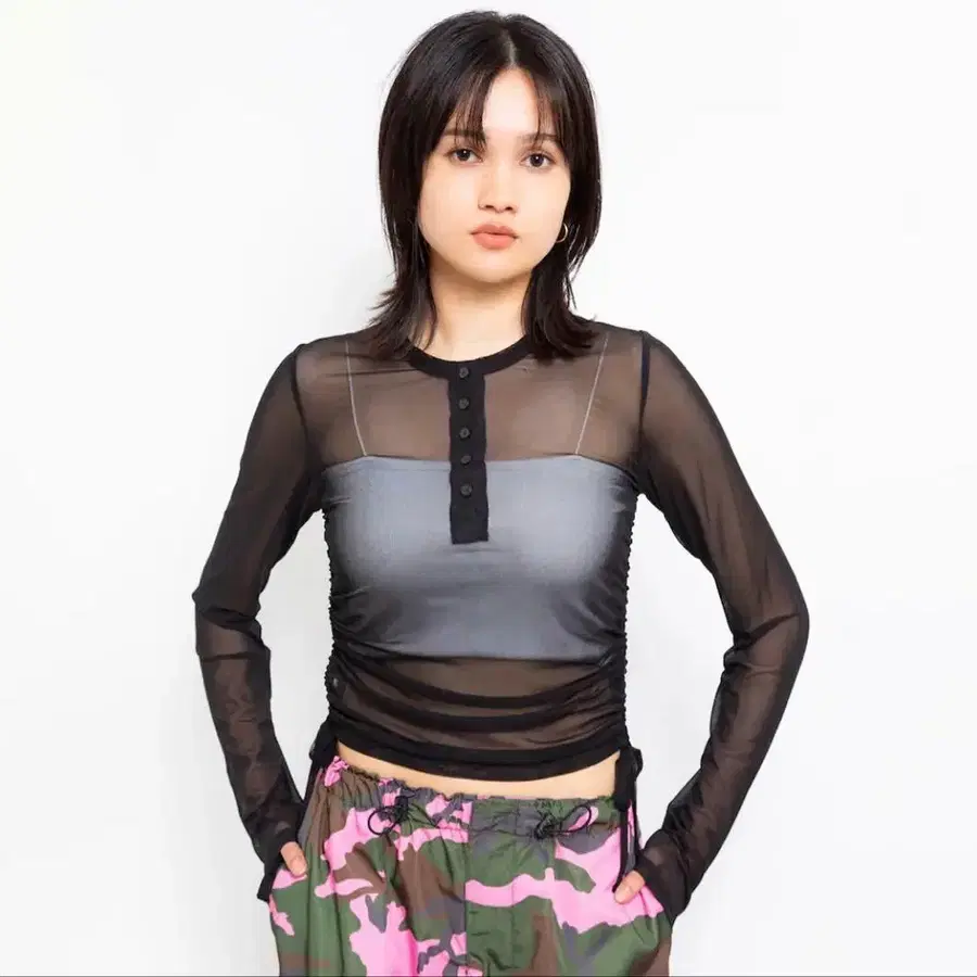 새상품 아토모스 핑크 셔링 시스루 탑 블랙