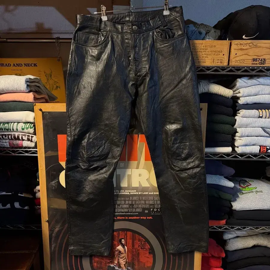 멋스러운 개체 90s 빈티지 가죽 팬츠 블랙 W34 골든 사이즈