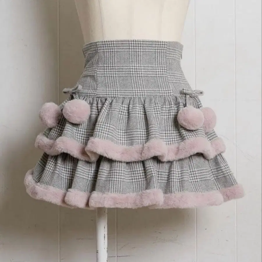 pium 퍼 포함 티어드 미니 스커트 그레이 체크