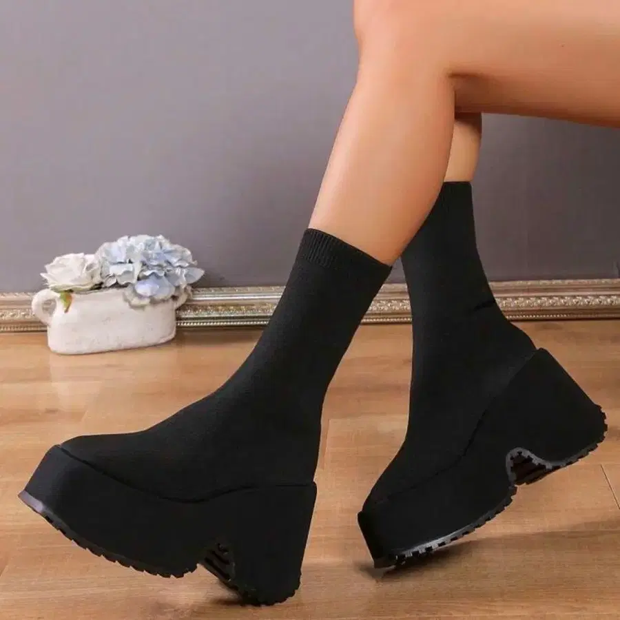 통굽 블랙 삭스 부츠 발목 슬림 사이즈 39