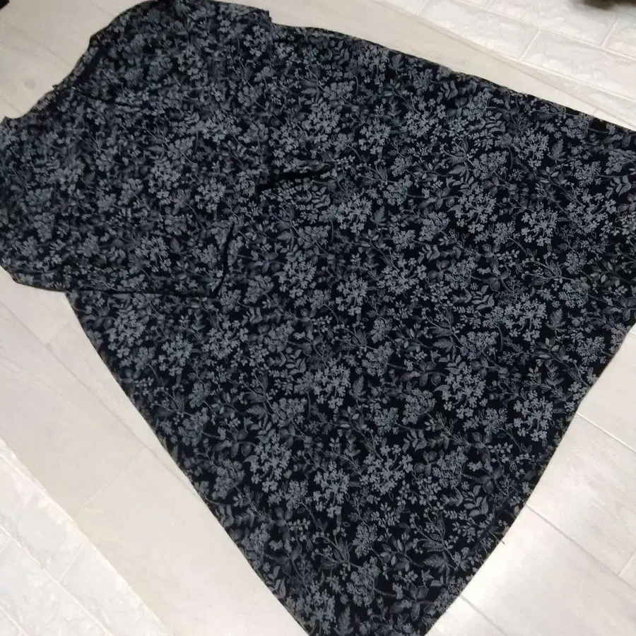 파르티쿨라르 다크 네이비 컬러에 흰 꽃 패턴 긴팔 롱 원피스