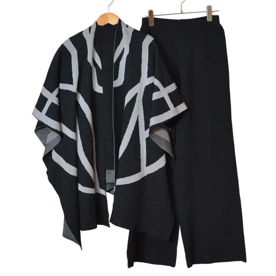 택 포함 새상품 M~L 숄 x 하이넥 스웨터 x 와이드 팬츠 여성용/블랙