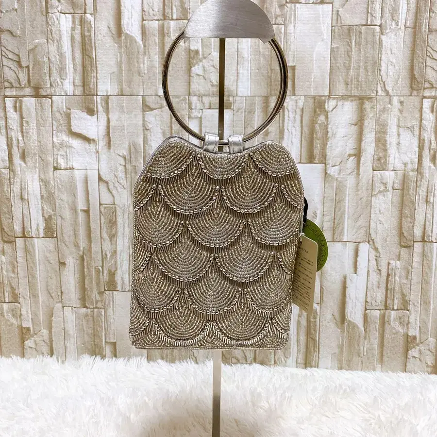 택 포함 새상품 미사용! 스캘럽 비즈 장식 실버 파우치 백