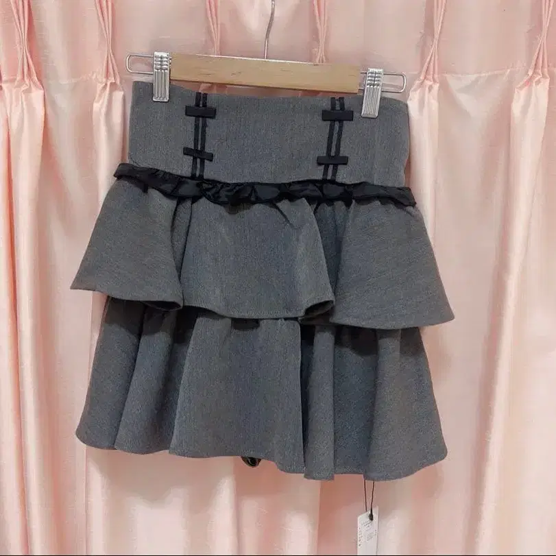 pium 티어드 프릴 도리 미니 스커트 차콜