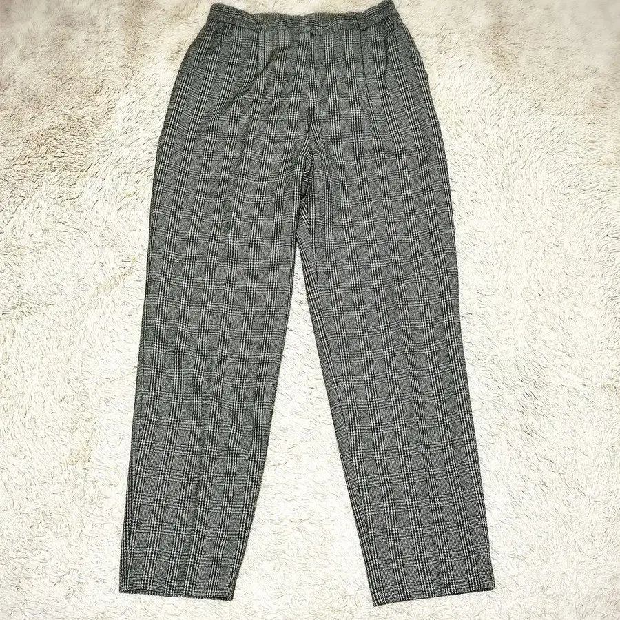 글렌체크 테이퍼드 팬츠 일본제 안감 부착 센터 프레스