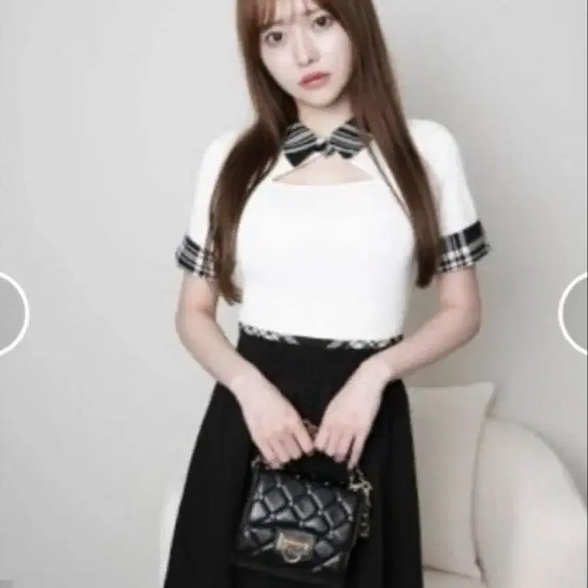새상품 립 서비스 체크 컬러 플레어 니트 원피스