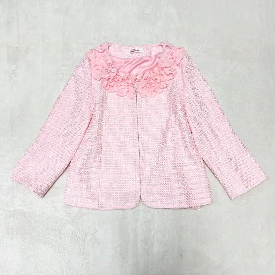 갤러리 비스콘티 프릴 장식 트위드 노카라 자켓 3