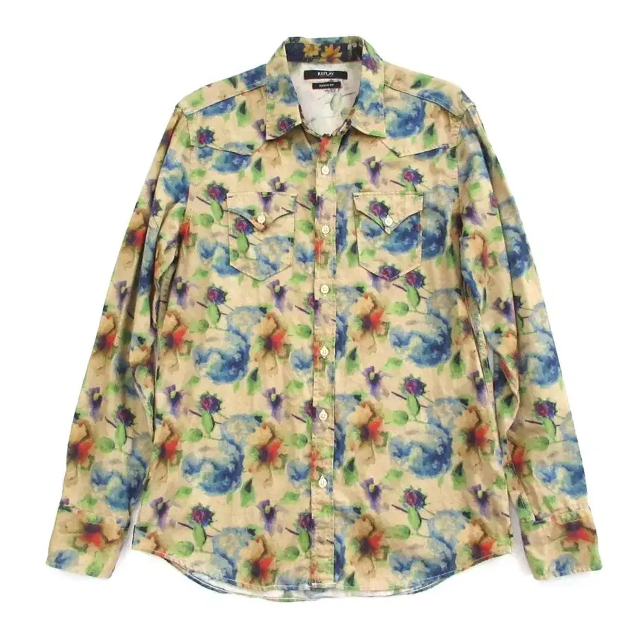 [ REPLAY ] 리플레이 플라워 프린트 코튼 웨스턴 셔츠 0247