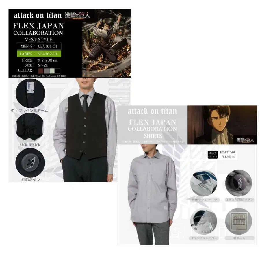 진격의 거인 리바이 와이셔츠 베스트 2세트 미개봉