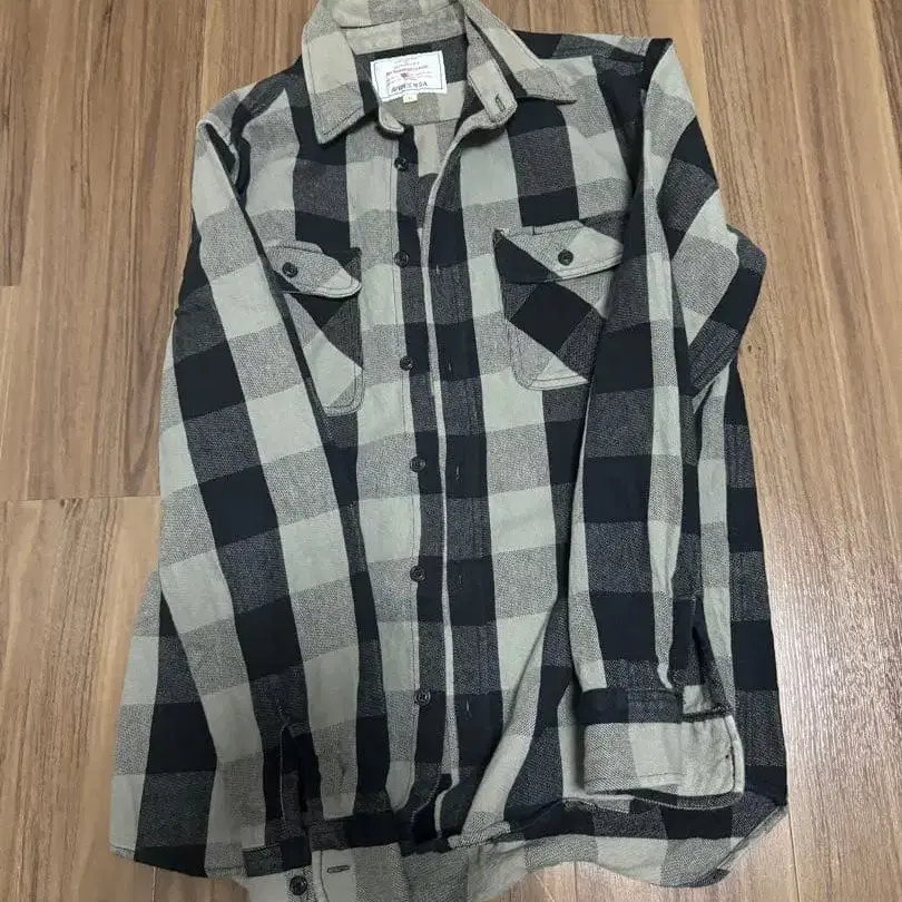 AVIREX USA 블랙 그레이 체크 플란넬 셔츠 L
