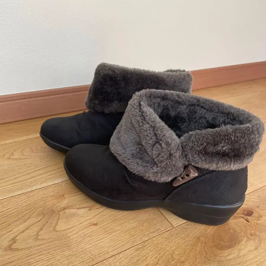 블랙 스웨이드 퍼 내부 부츠