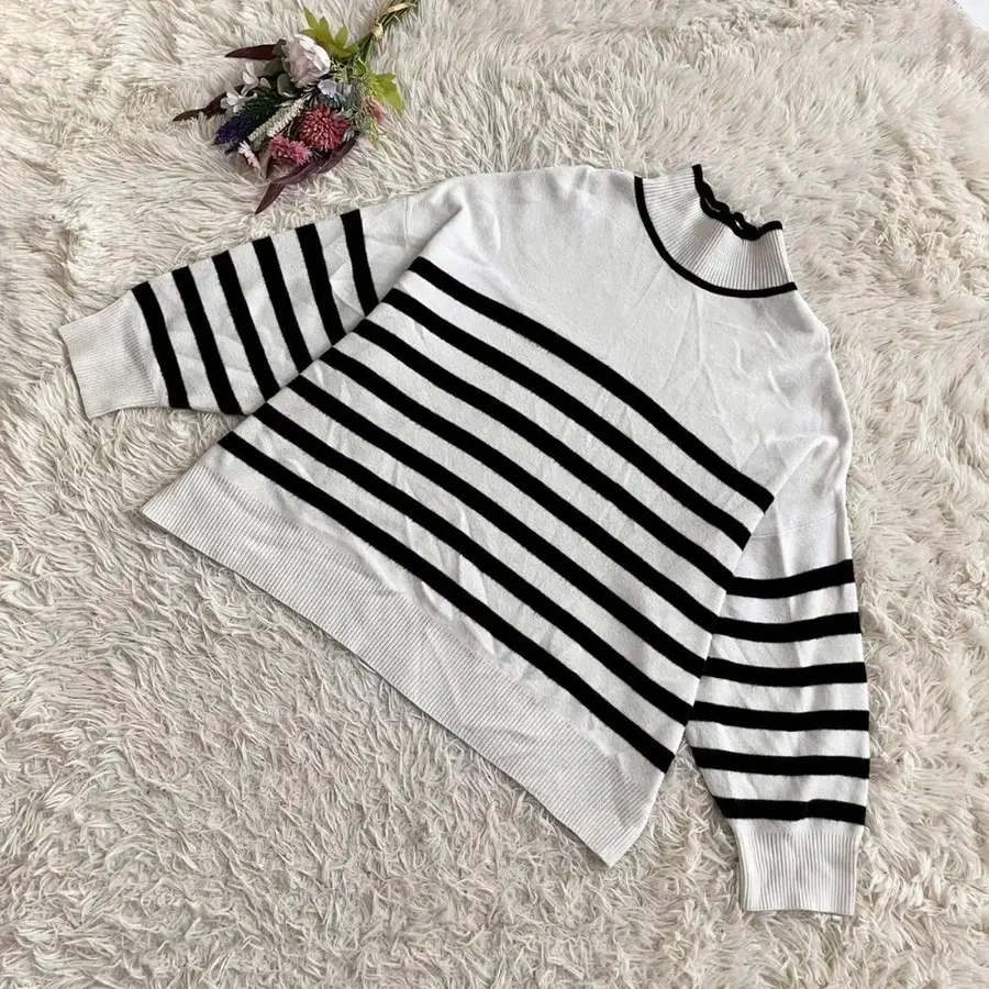 [ MEDDUM ] 하이넥 보더 니트 스웨터 긴팔 루즈핏 실루엣