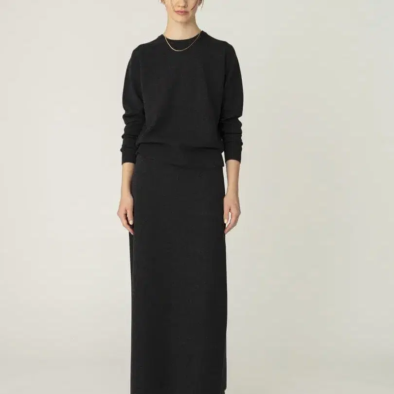 스커트는 깔끔하게 마무리한 스트레이트 라인이 아름다우며, 릴랙스한 느낌이면서도 고급스러운 인상을 연출합니다.