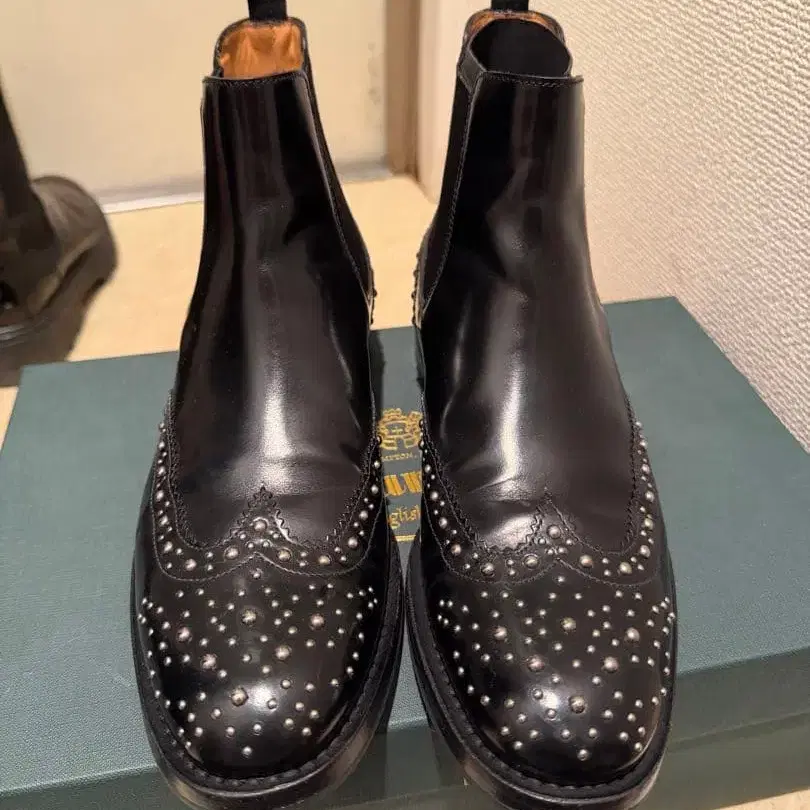 Church's 쳐치 36.5 스터드 장식 블랙 가죽 사이드 고어 부츠