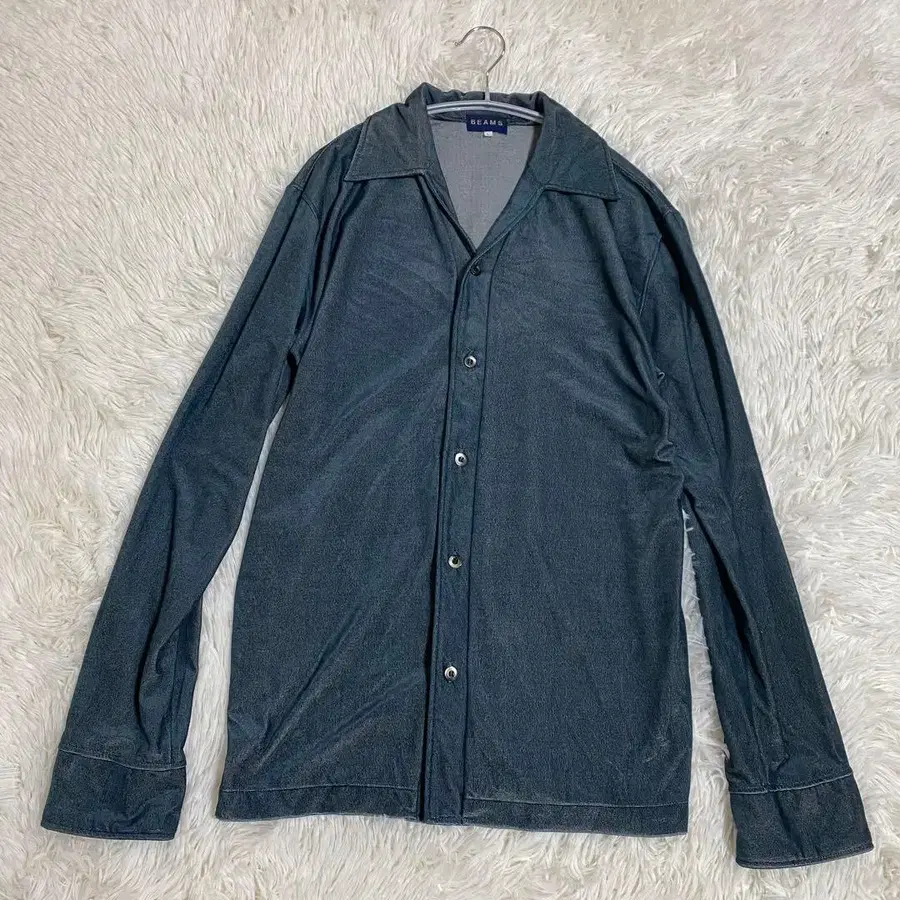 빔즈 벨로아 느낌 오픈 카라 셔츠 긴팔 L 네이비 남성용