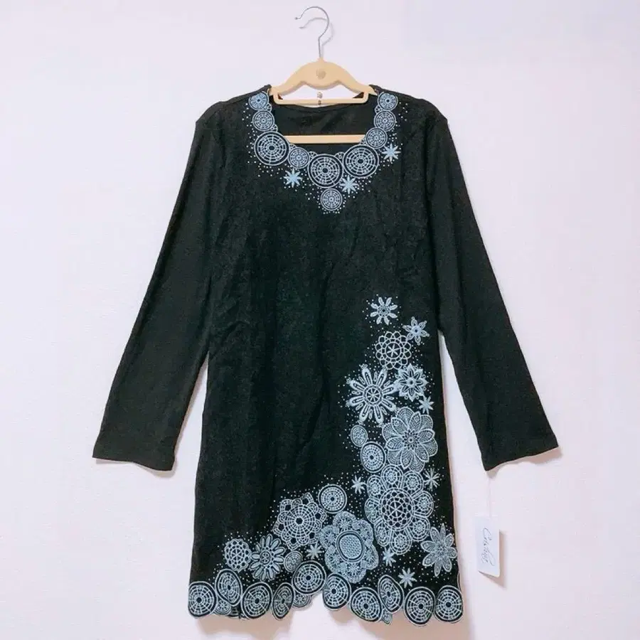 [미사용 새상품] 원피스 튜닉 티셔츠 꽃무늬 자수 L사이즈